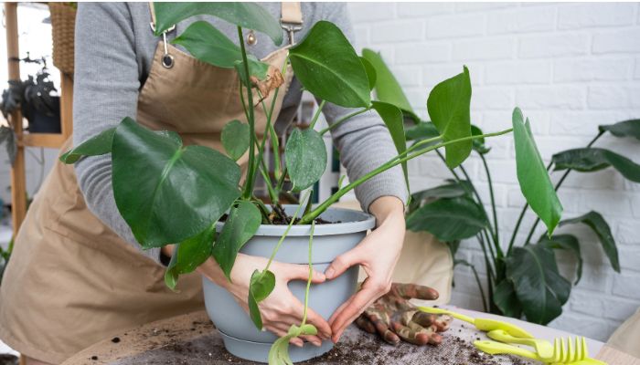 モンステラの成長度合いをチェックして、春から初夏までに行ってください。